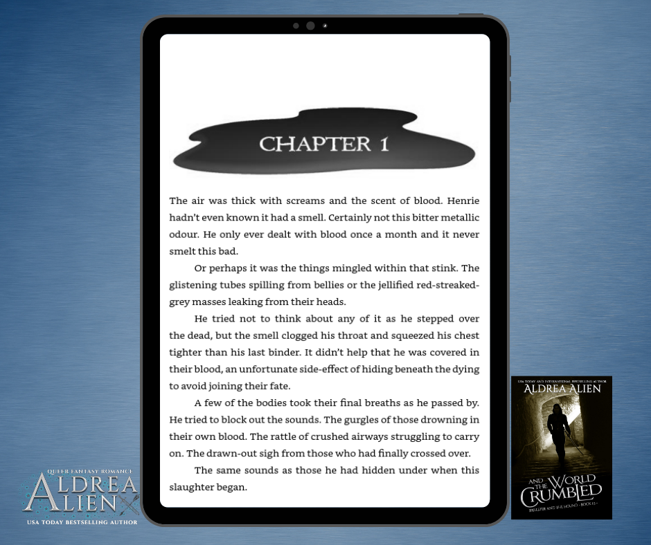Note: And the World Crumbled is a supplementary book in the Spellster and the Hound series set after the first book. It is a horror fantasy told in third person with a single POV and contains extreme graphic violence, including the mass slaughter of adults and children of every age range.
